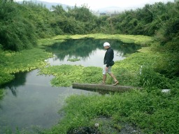 土手で転倒。 大喜びで激写するDさんを激写返し。 いつまでも草むらで寝てると体が痒い!! |