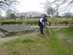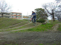 | 2002年2月3日(日) ちゃりんこ部会(兼:段ボールハウス見学会) 本日、D代表はデートで欠席。 替わりに、M氏のおともだち、えちご屋さんがいっしょに遊んでくれたわけです。 きょうはこけてないのだが、なぜか左手が痛い。多分、遊具を登ろうとしたあの時のショックで・・・ そんなわけで今回も画像を中心によろしく。 |