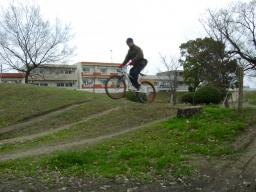 これはちっと早すぎ。 ここは某石○川公園のジャンピングスポットだ。 D氏もわたしも流血の憂き目を見たデンジャラスポイント! (おっさんには) |