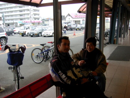 その後、坊ちゃ○スタジアムを抜けて、某スーパー前で休憩。 坊ちゃ○スタジアムの階段くだりで前サスのないE氏がご転倒。 しかしうれしそう。 |