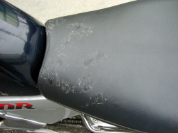 久しぶりに火を入れたM氏愛車のSDRでやってきた。 すかさず、うちの「ひでゅん」がチェック。 シートに残る検査済みマーク。 |