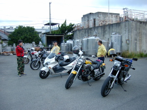| さらにその間にすっかりテンションが下がり 「腹へった」「わし、帰って寝る」と駄々をこね出すおやぢ1名。 が、この後に走るコースを思えば彼の選択は正しいかも。 6時30分、出発して10秒後にはこのおやぢの姿がなかった。 |
