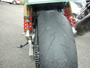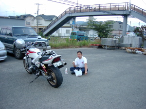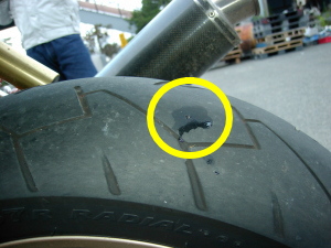 | 久しぶりに参加したDやろう。 呑気にパンなど食っている場合ではない リアタイヤを良く見ると凹んでいるぞ。 |