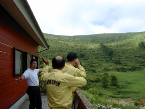 | 何十年ぶりかに訪れた大野ヶ原。 喫茶店から源治駄ヶ場(なんのことやら)を望む。 さすが高原、涼しい。 |