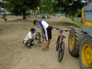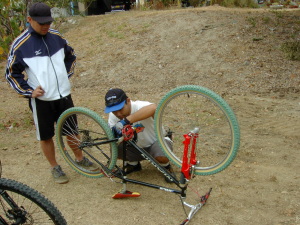 | ここでは修理不能。 今日のちゃんりんこ部会はこれにて終了。 舗装路を真面目に帰ることに。 |