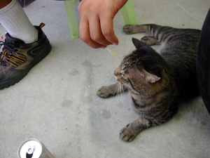 | が、そこは気まぐれな猫やろう。 おまえら、はよ帰れ。 てぽどんの一言で、おっさん達は素直に帰っていきました。 |