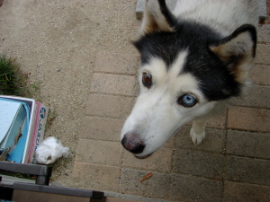 | 仕事が一段落して、戻ってきたてぽどん。 せんべいを食ってみる。 |