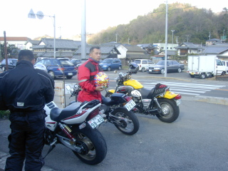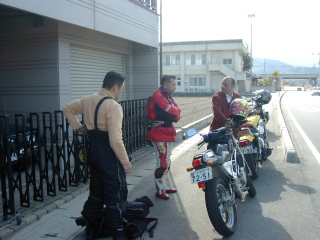 | 03年2月2日(日) でぶ腺自動二輪部会 久しぶりのでぶ腺。 Mやろう爪楊枝号のバーハン化記念ということで、寒風の中、走ってまいりました。 当初の目的は伊方原●のはずだったのだが・・・ |