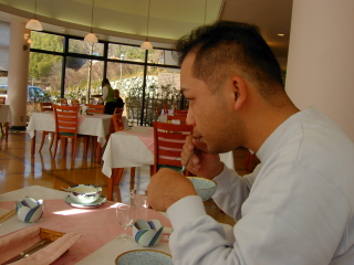 | 伊方原発は変更。中山町の花の森ホテルの温泉へ。 入浴料300円。せまいけどトロン温泉。 なぜか、ホテルのレストランでおフランス料理のプチコースを食する。 フランス料理が世界で一番似合わんスチールウールおやぢ。 手は震え、目は泳ぎ、さらに毛髪は急激に脱毛 |