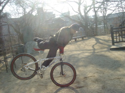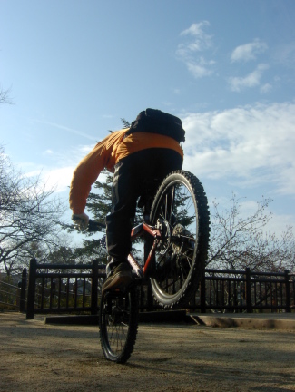 | かっこいいジャックナイフをカメラに! と緊張してさっぱりリアが上がらない。 |