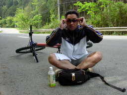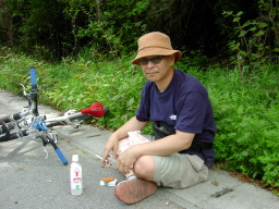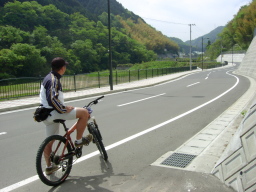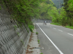 | 体力の有り余るDは、蛇行運転をしながらどんどん遠ざかる バイクなら絶好のコーナーなんぢゃが・・・ |