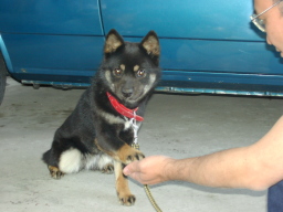 | 涙の特訓で「お手」ができるようになった「えるしー号」 決して目は見ない |
