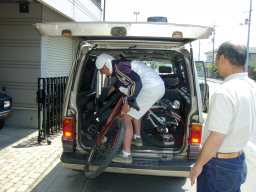 | じゃ、わしらをぼんごで積んで帰れ! と、勝手にちゃりを積み込むD。 |