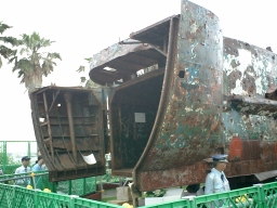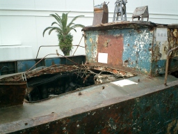 そうです いまが旬の北朝鮮工作船の展示即売会です。 画像は小船が格納されていた後部ハッチ |