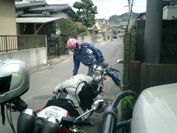 いつの間にやら消えてしまったHおやぢは放置して。 せこ道を走って久万方面へ。 借り物バイクでせこ道は肩が懲ります。 車両保険には入ってないよ、こけたら弁償してや(某YSP談) |