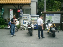 | 1日乗り放題3000円ぽっきり!の甘い言葉に騙されて、借りてしまいました。FJR1300 さっそくでぶ腺患部(幹部)を集合。 試乗を兼ねて、久しぶりに石鎚スカイラインを登ってきました |