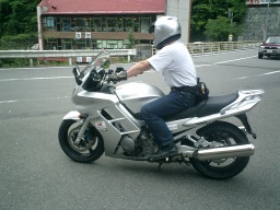 FJRを試してみるDさん。 ジェントルな乗り心地と滑らかな吹け上がりを実感したらしい。 さすが大人のヨーロピアンツアラー ステップを削って戻ってきやがった |