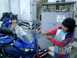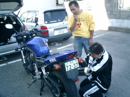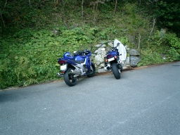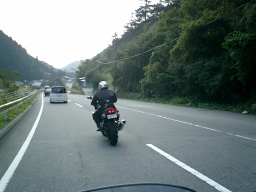 今回大変役にたったのがこれ。コードレスツーリングコム 本来は、タンデムライダーとの会話に使用するものだが、バイク同士でも使用可能。 20m程度の距離なら問題なく同時通話OK ただし聞き取れるのは時速60km程度まで。 それ以上はメット内に入り込む風の音で音声が聞こえにくい。 普段なら絶対に聞こえないコーナーでの絶叫などがリアルタイムに聞こえます。 のんびり並走しながら会話するのも面白い。 先頭者が先の状況を教えてくれるので、後ろはとっても安心らくちんだ。 ちなみにDさんはコーナリングのたびに「よいしょ」 私は「ふんっ」 非道な追越をかけたときは「すんませ〜ん」 |