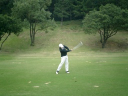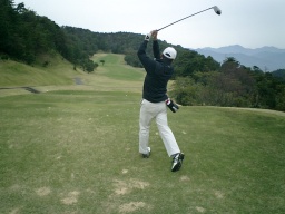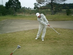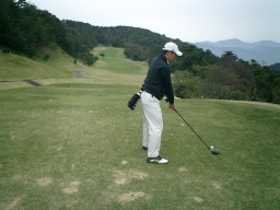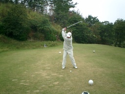 フェアウエイからの第2打 なんだかわからんが、なんとなく左手が変 |