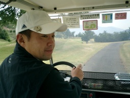 午後から雨が本格的に。 17番PER4ではティーショットを豪快に3連続OB! が、実はこのホール、プレ4。 結局ダボであがりやがった。 しかしここでボールを使い果たしたDやろう。 |