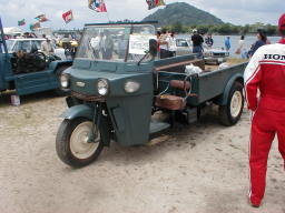 | なつかしのオート3輪。 キックスターターで、うちのおやぢがけっちん食らってました。 子供ながら、恐ろしいマシンと感じたものです。 やはり顔が王監督。 |