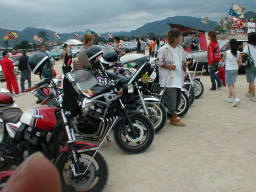 | 今話題の旧車会の面々。嬉々として旧車の写真を売ってたらしい。 が、会場出口にはパトカーが待ち構えてたようです。 お気の毒・・・ |