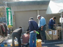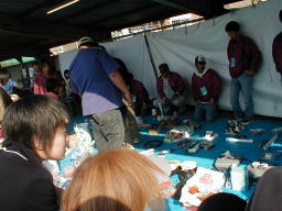 | おそらくビンゴゲームの商品を物色する忍ちゃん。 拡大して賞品を確認したが、一般人には粗大ゴミ? |