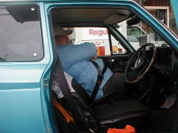 | のっとるがな! どちらも気の毒 ↓ 巨体が運転席まではみだし、シフトもままならず。 シートベルトは忍ちゃん専用ワンオフスペシャル。 これで600km走った模様 |