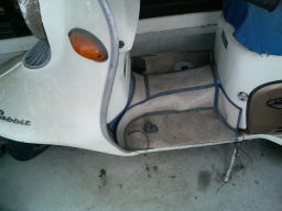 | 40年前の車体にも関わらず、欠品無し。 目だった腐食もなく、コンディションはすばらしい。 向こう側にあるのが、フットブレーキ。 手前にあるのは、どうやらライトスイッチらしい。 なんちゅうとこに! |