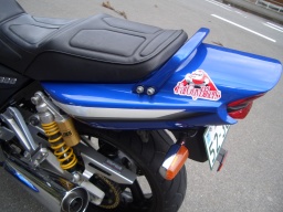 お約束のでぶ腺ステッカー 純正のオーリンズサスがうらやましい。 |