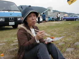 | おくさん、仕方なく弁当食ってます ぼろい車に囲まれて、気の毒に・・・ |