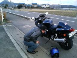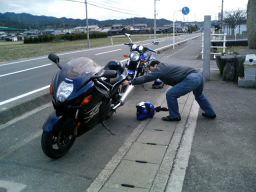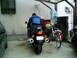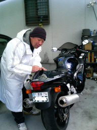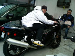 結婚して数ヶ月、再び激太り。0.1tにもう間近。 隼の硬いリアサスもすんなり沈んだ。 Dさんの愛車FZ1もすっかり忘れ去られ放置プレイ中。 |