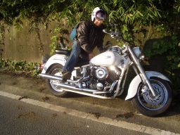 | こちらも久しぶり。 わたぞうXJR1300 交差点で後続のけろなり号を待つ。 |