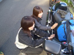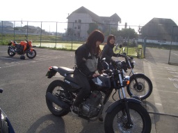 お互いのバイクにまたがってみる この2名が、けろなりくんが誇る 最終兵器と秘密兵器 |