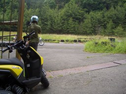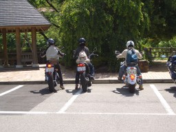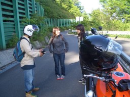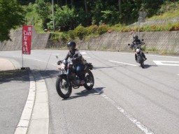 二人とも、せこ道もワインディングも難なくこなします。 広田から砥部までの自由走行ではけろなり号をどんどん引き離し、 下りコーナーもけっこうなペースで楽しそうに隼のお尻を追い回してくれた秘密兵器号。 単気筒の意味を知らなくても走りのツボを心得ていらっしゃいます。 |
