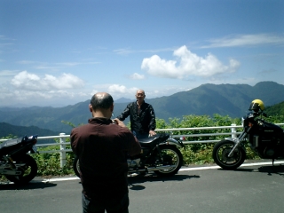 さて、帰りは木の果から西条までフリー走行。 楽しいワインディングが続くので、ペースを上げてみる。案の定、子犬のようにはしゃぎながら グラストラッカーが続いてくるし。 その後ろをこれまたでっかいおっさんがうれしそうに続いて追っかけてくるし。 と、気がついたらそのでっかいおっさんがついてこなくなった。 待てども待てども後続が来ないと待っていると、 現われたのは、すっかり顔面が崩壊してしまったXJR。 ←向けられたカメラに満面の笑顔でピースサインする忍ちゃんでした・・・ |