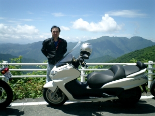 | このシリーズ主人公のけろなり君、第1子の誕生が間近いため今回の出走は断念。 かつてDS400でいくつもの武勇伝を作った彼の現在の愛車はヤマハアプリオ50cc。 「もうそろそろ大人におなり」と突き付けられ最後は「いつかは125cc買ってあげるけん」と慰められ、誕生する娘(らしい)のためにDS400を泣く泣く手放したのだった。 正装で仕事に励むけろなり君↓ ![]() 今回はけろなりチームと孤高のレストアラーふろんておやぢチームと合同でツーリングすることになった。高松より、新人の黒船しのぶちゃん(XJR1300R)と久しぶりのらっきょおやぢ(W650)を迎えて合計8台での出走となった。 |