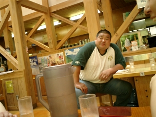 こちらが高松からやってきた黒船?しのぶちゃん。 160kgの巨体に素で驚くわたぞう氏。 わしも驚いた。 |