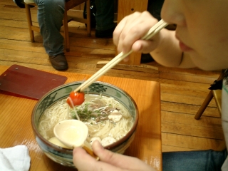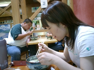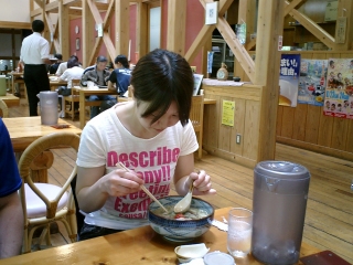 呑気に注文したきじラーメンを待つしのぶちゃん この1時間後に想像もつかない気の毒なことに・・・ |