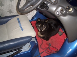 で、その中にはわんちゃんが楽しげに乗った画像も・・・ これに刺激されエルシーを乗せたものの、すっかり忘れてたようだ |