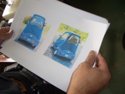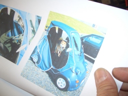 よく見ると、窓の形がマジックで書いてある。 本人いわく、これは幌の型紙に使うらしい。 |