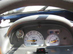 | 久しぶりにミツオカ号の室内を覗いてみると、 オプション?の時計が貼り付けられていた。 |