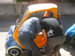 | 車はたくさん所有しているが、 今現在、普通に走って移動できる乗り物は 唯一、このミツオカ号しかないらしい・・・ |