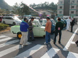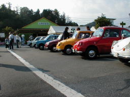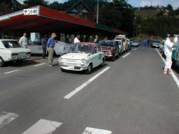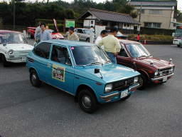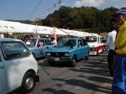 | 10月25日〜26日 ついにご出走! 全国から自慢の旧車オーナーが集い、パレードしたりあれしたりこれしたり・・・ よくわからないが、せいばーおやぢには夢のような一時だったようです。 いっしょに連れて行かれた奥方はどうだったのかその胸のうちは知る由もないが。 以下に掲示板に書かれたおっさんの感激コメントをコピーしました フロンテは不滅じゃ。無敵じゃ。パレードの先頭なのじゃ。 会場を出発する時の万雷の拍手の音が,今も聞こえるようじゃ。 市内パレードの途中でN−360はエンジンが止まってリタイヤ(どうやって会場に戻ったんだろう?)し,キャロルは休憩のたびに慌ててキャブ調整(連続の低速走行が苦手)していたが,フロンテなら余裕よ。 リードバルブ付き2スト水冷3気筒エンジンは強力無比な上,その静粛性からしばしばタコメーターでエンジンがかかっている事を確認しなければならないほど優秀じゃ。 もっとも,パレードで先頭を走ったのは軽四だからで,軽四の後は軽三輪・普通三輪,普通車と続き,最後尾はカウンタックとランボルギーニでした。 だそうです。 これでフロンテ熱はさらに加速しそうで、間違いなく墓場まで抱えてでも持っていくのだろう。 |