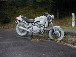 | これはせいばー号ではないですか。 真っ白なのはなぜ? 益田市のオブジェと化しているのか *会場が教習所らしく、教習車の成れの果てらしい |
