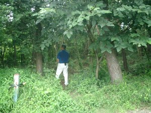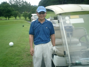 1番ホールを上がったばかりで何故か大量の汗、と ふっきれた笑い。 状況=2打目からOB2連発! その後記憶なし。 *INの戻りで、このときの第1OBボールを発見、実はセーフだった・・・ 土手をよじ登ったり転げ落ちたりしたのは何のため・・ |