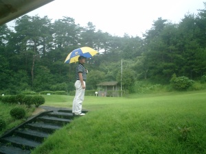 途中から土砂降り ゴルフは雨が降ったって関係なしです。 |