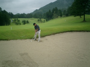 さて鬼門のバンカーショット |