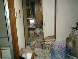 木こりの巣窟、入り口より。 しかしここは日本?? 帰宅してからなんだか体中が埃っぽいんですけど。 絨毯代わりの雑誌が足に心地良かったのは確か・・・ |